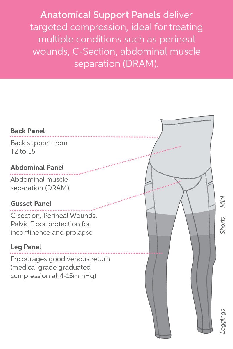Patented Anatomical Support Panels (ASP) in the SRC Recovery garments deliver targeted compression, ideal for treating multiple conditions like c-section wounds, perineal trauma and episiotomy wounds, abdominal muscle separation and lower back pain.