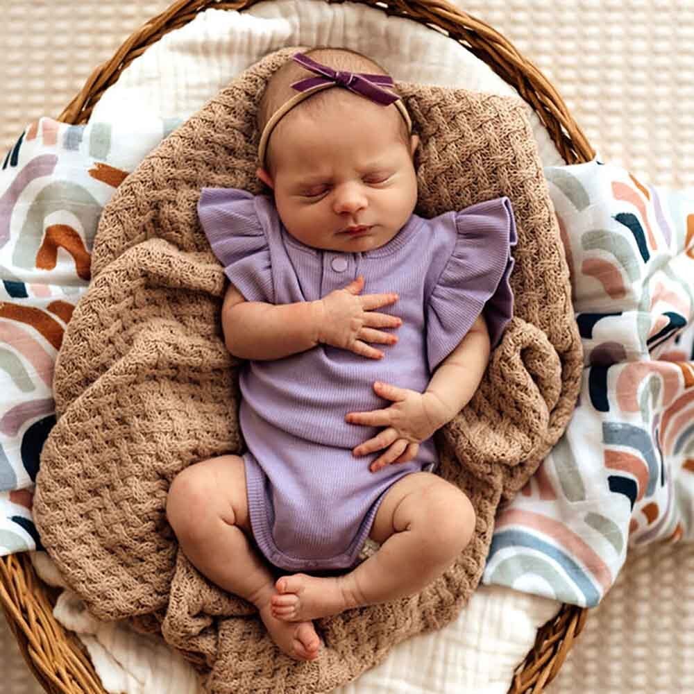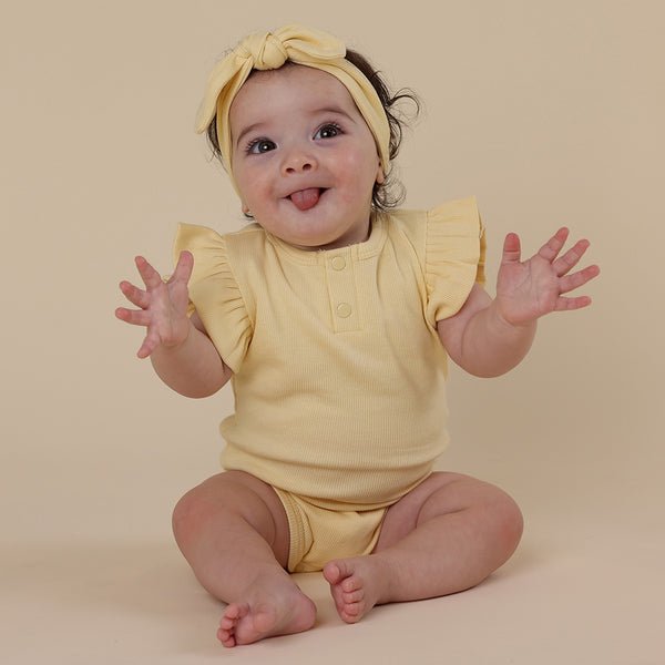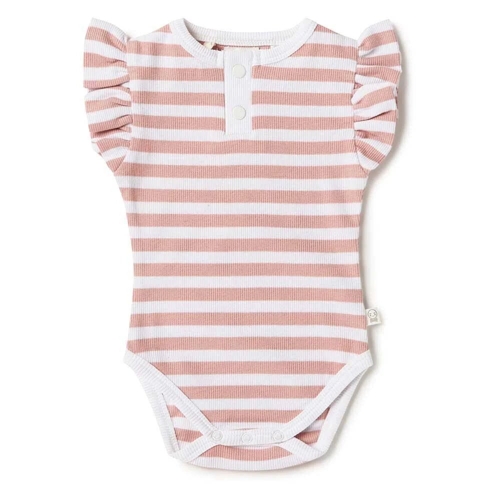 Soft and stretchy, our bodysuits are easy-care and coordinate well with our pants and shorts. This design has a gorgeous frill detail on the shoulders, and is also really comfortable to sleep in. All Snuggle Hunny clothing is made with GOTS Certified Organic Cotton CU 1182228.