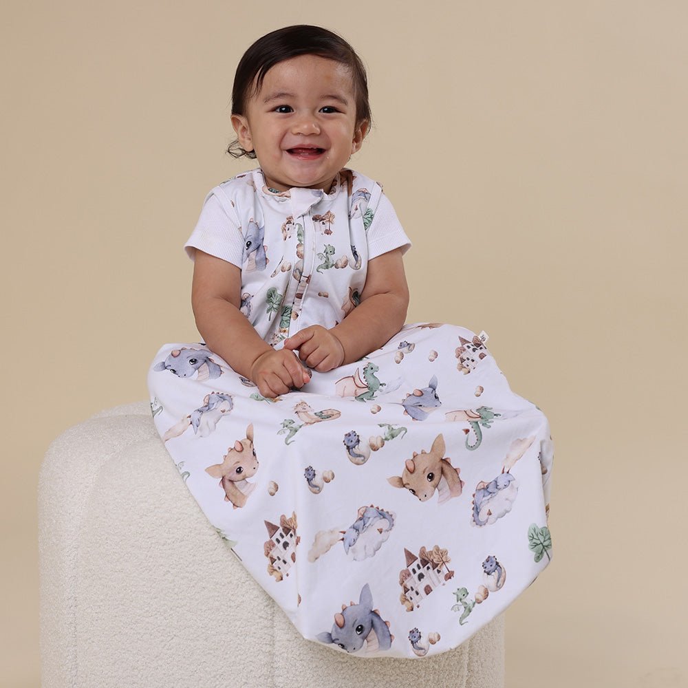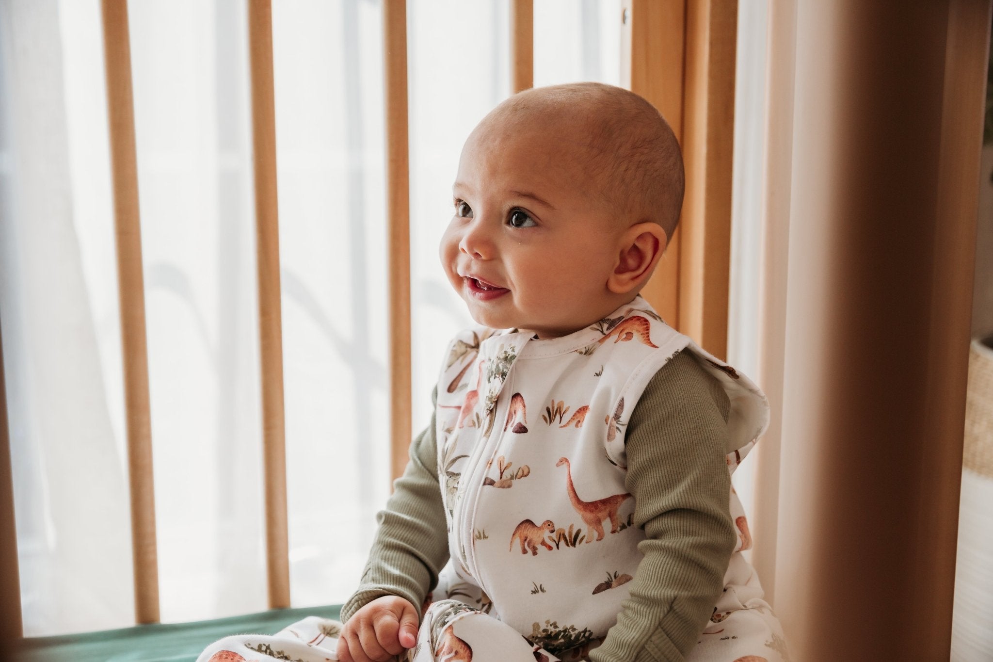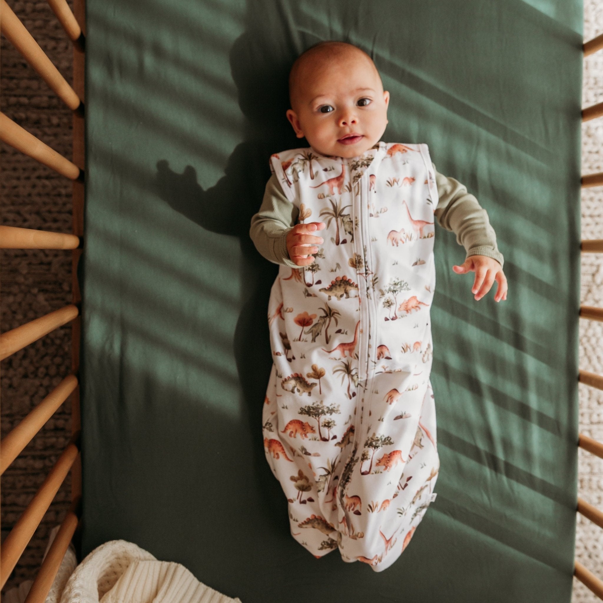 Our Snuggle Sleeping Bags are organic, breathable and designed for arms-out sleepers. 1.0 TOG is for warmer rooms. Sleeping bags are ideal when a baby starts to roll. This is when they should sleep with their arms out and not be swaddled anymore.
